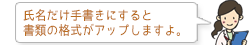 - パソコンなどで作った職務経歴書を印刷して使う場合、氏名を手書きにすると書類の信用度が高まります。